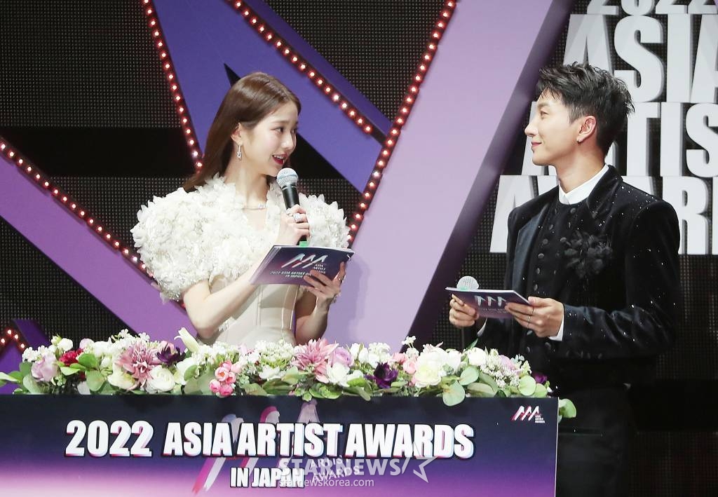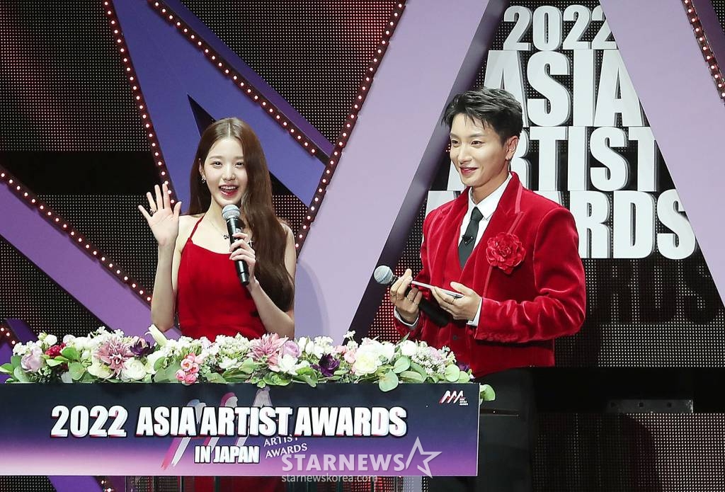 아이브 장원영, 슈퍼주니어 이특이 13일 오후 일본 나고야 니혼가이시홀에서 열린 스타뉴스-미디어보이 주최 '2022 Asia Artist Awards IN JAPAN'(2022 아시아 아티스트 어워즈, 이하 2022 AAA)에서 진행을 하고 있다. 스타뉴스와 미디어보이가 주최하고 Asia Artist Awards 조직위원회와 더스타파트너, 컬쳐 엔터테인먼트가 공동 주관하는 글로벌 NO.1 시상식 '2022 AAA'에는 올 한 해 동안 국내외에서 많은 사랑을 받은 가수, 배우들이 참석해 눈을 뗄 수 없는 화려한 글로벌 축제의 장을 펼친다. 2022.12.13 /사진=김창현 기자 chmt@
