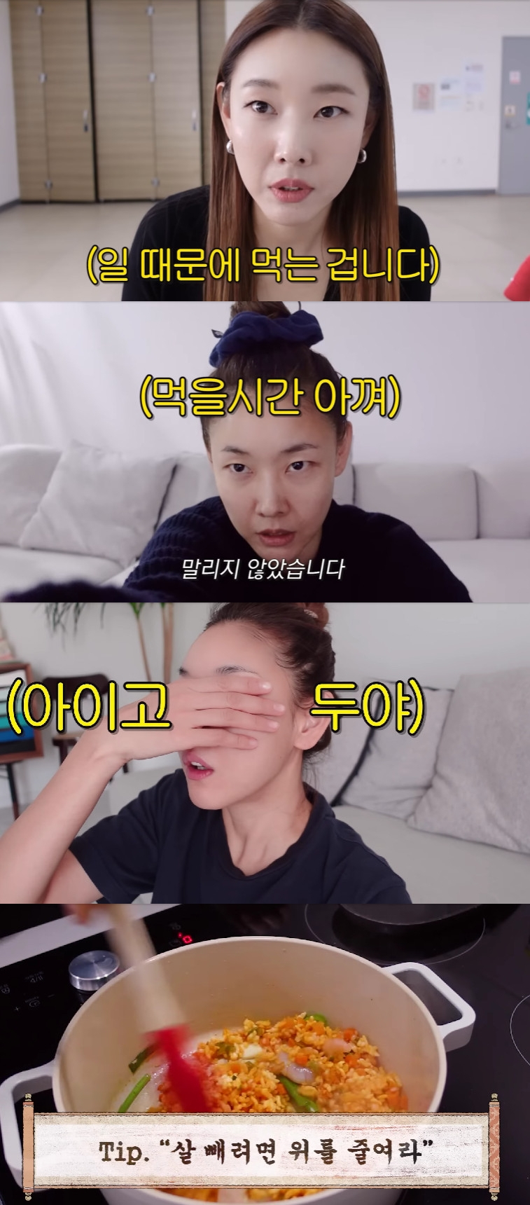 특히 다이어트식인 냉동 곤약 볶음밥을 요리하는 모습을 보여주며 "욕하실지도 모르겠지만 내 위를 줄이면 이 밥의 양도 적지 않게 느껴진다"며 다이어트 비법을 밝혔다. 한혜진은 "지금은 제 위가 늘어나 있는 상태긴 하다. 먹는 양을 줄이려고 하는데 고통스럽다. 연말이라서 술자리가 장난이 아니"라고 덧붙였다.