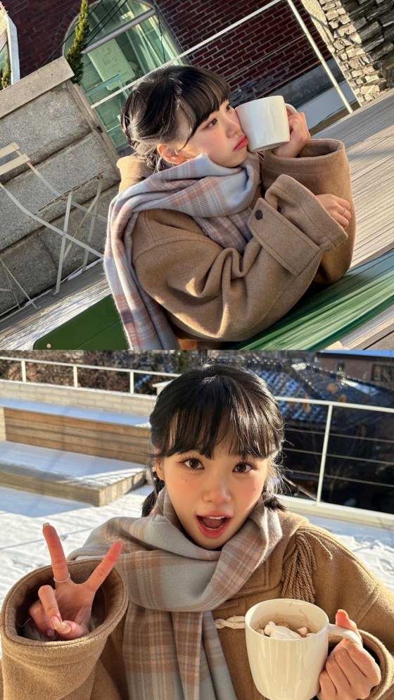 공개된 사진 속에는 핫초코를 들고 포즈를 취하고 있는 채원이 담겨 있다. 채원의 뚜렷한 이목구비와 작은 얼굴, 그리고 귀여운 분위기가 눈길을 끈다.