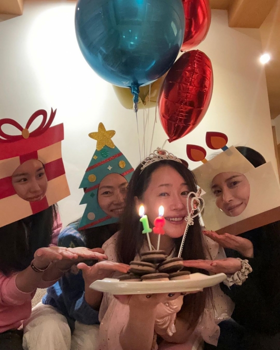 공개된 사진 속 오윤아는 지인들과 함께 엄지원의 46번째 생일을 축하하고 있으며 엄지원은 왕관을 쓰고 공주로 변신해 눈길을 끈다.