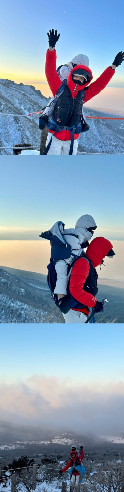공개된 사진에는 이시영이 아들 정윤과 함께 한라산에 오른 모습이 담겨 있다. 눈 덮인 한라산 절경을 배경으로 아들을 업고 있는 이시영의 모습이 감탄사를 자아냈다.