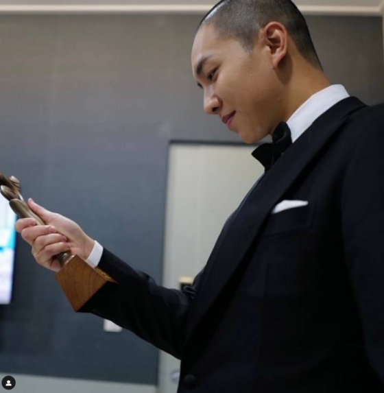 이날 특히 이승기는 영화 '대가족' 촬영차 삭발을 한 후 시상식에 등장해 비주얼적으로도 많은 시선을 모았다.