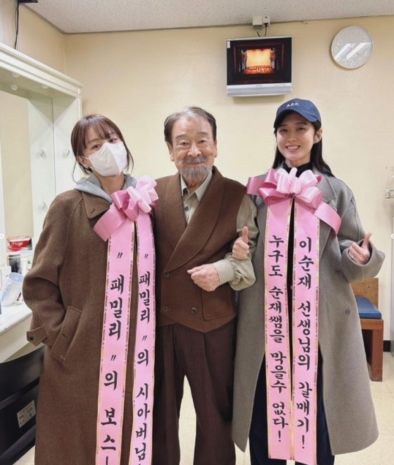 공개된 사진에는 장나라가 윤상정과 함께 문구가 새겨진 화환 리본을 한 채 배우 이순재의 양쪽 팔짱을 낀 모습이 담겼다. 장나라와 윤상정의 리본에는 각각 '이순재 선생님의 갈매기, 누구도 순재쌤을 막을 수 없다', '패밀리의 시아버님. 패밀리의 보스'라는 문구로 이순재를 응원했다.