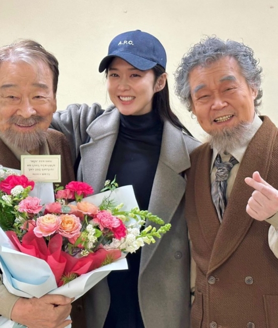 또 다른 사진 속에는 장나라가 꽃다발을 든 이순재와 친아빠 주호성의 사이에서 환하게 미소 짓는 모습이 담겼다.