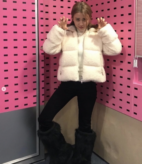 공개된 사진 속 박하선은 핑크색 벽면을 배경으로 포즈를 취했다. 박하선은 흰색 패딩과 검은색 털 부츠로 겨울 패션을 선보였다. 박하선은 손톱을 세우며 곰을 흉내 내 귀여움을 자아냈다.