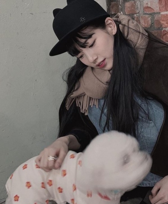 공개된 사진 속에는 귀 모양이 달린 모자를 쓰고 목도리를 착용한 수지가 반려견을 만지는 모습이 담겼다. 그는 조화로운 뚜렷한 이목구비로 미모를 뽐내 감탄을 자아냈다.