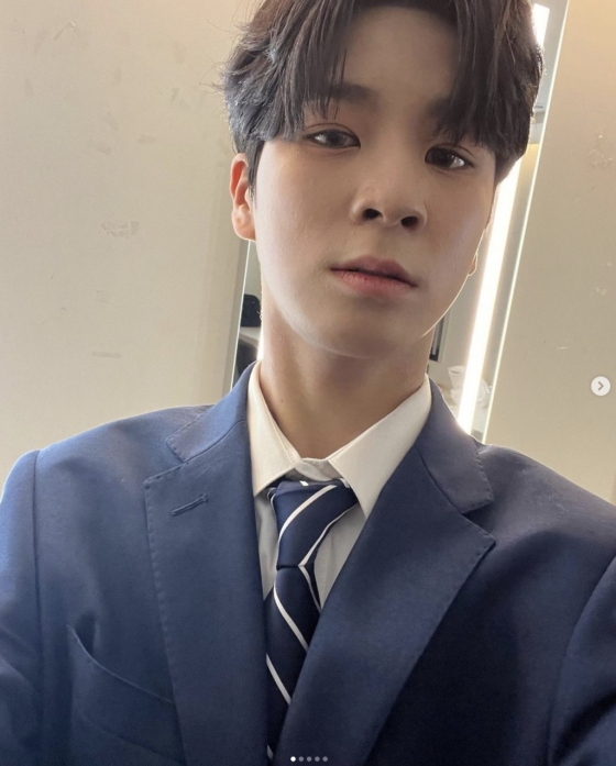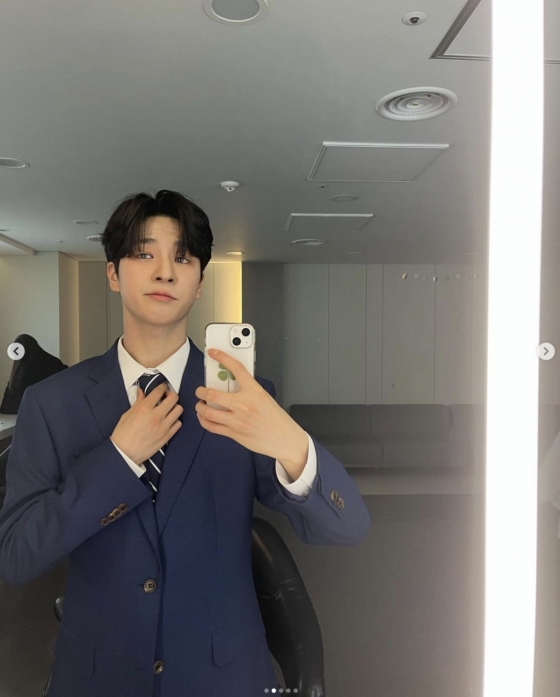 공개된 사진에는 정동원이 남색 수트를 입고 셀카를 찍었다. 정동원은 넥타이를 어루만지며 포즈를 취했다. 정동원은 여심 녹이는 환한 미소를 자랑했다.
