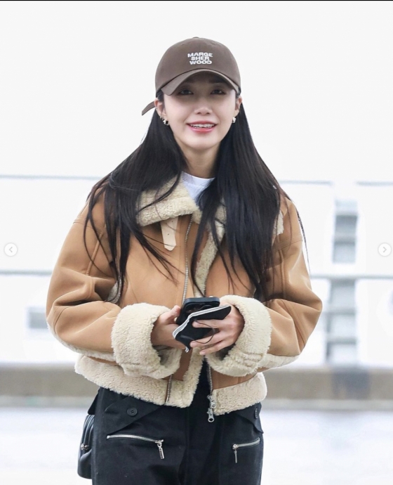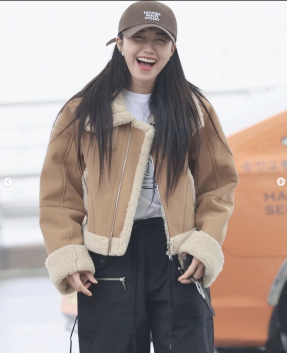 공개된 사진 속 정은지는 갈색 캡 모자에 무스탕을 입고 미소를 짓고 있다. 또 다른 사진 속 정은지는 호탕한 웃음으로 시선을 모았다.