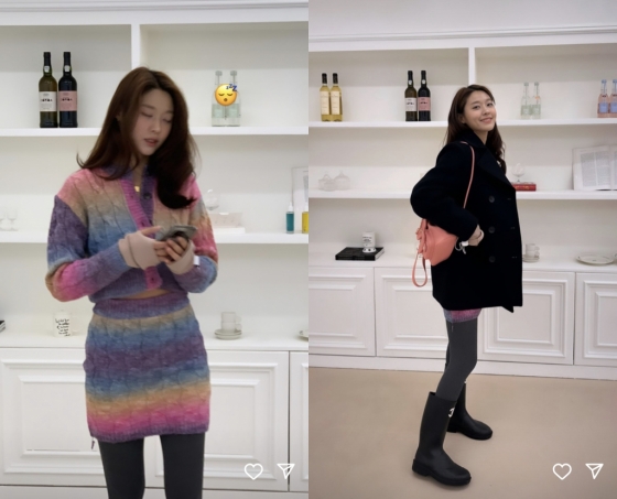 설현, 니트 패션에도 숨길 수 없는 각선美.."역시 레전드 미모"