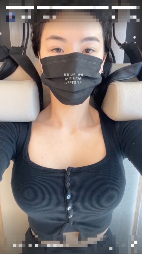 전다빈은 "퉁퉁 부은 쌩얼..9시 타임 캔슬 10시 타임 대기"라며 필라테스 수업 준비에 한창임을 알렸다.