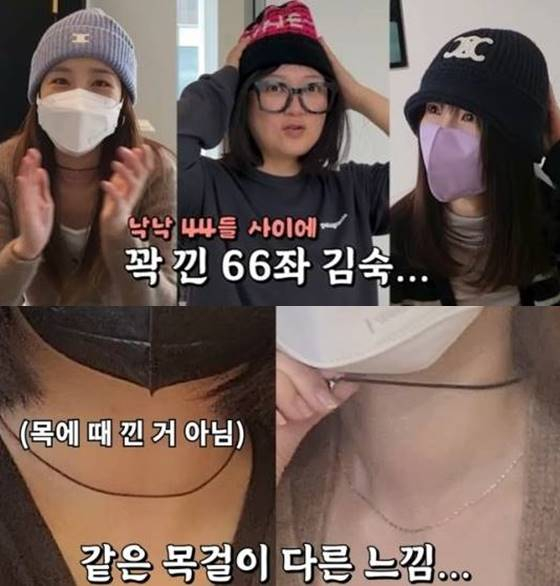 그러나 영상 속 김숙은 박소현과 산다라박에 비해 옷과 모자, 목걸이 등의 핏이 잘 맞지 않아 괴로워하는 모습으로 담겼다. 반면 박소현, 산다라박은 즐겁게 쇼핑하는 모습으로 김숙과 대비되게 연출됐다. 특히 박소현, 산다라박에겐 '44좌', 김숙에겐 '66좌'라는 자막이 달렸다.