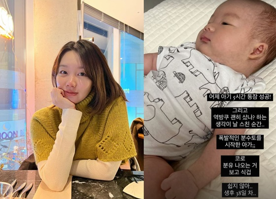또한 김수민은 "역방쿠(역류방지쿠션) 괜히 샀나? 하는 생각이 날 스친 순간... 폭발적인 분수 토를 시작한 아가. 코로 분유 나오는 거 보고 식겁. 쉽지 않아. 생후 38일 차"라고 전했다.