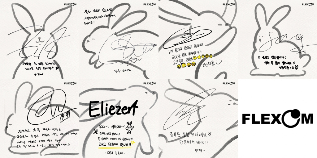 플렉스엠은 22일 공식 SNS에 지아, 임한별, 한승윤, 송유빈, 밴드 디에잇투(D8)가 손 글씨로 적은 설날 인사말 사진을 공개했다.