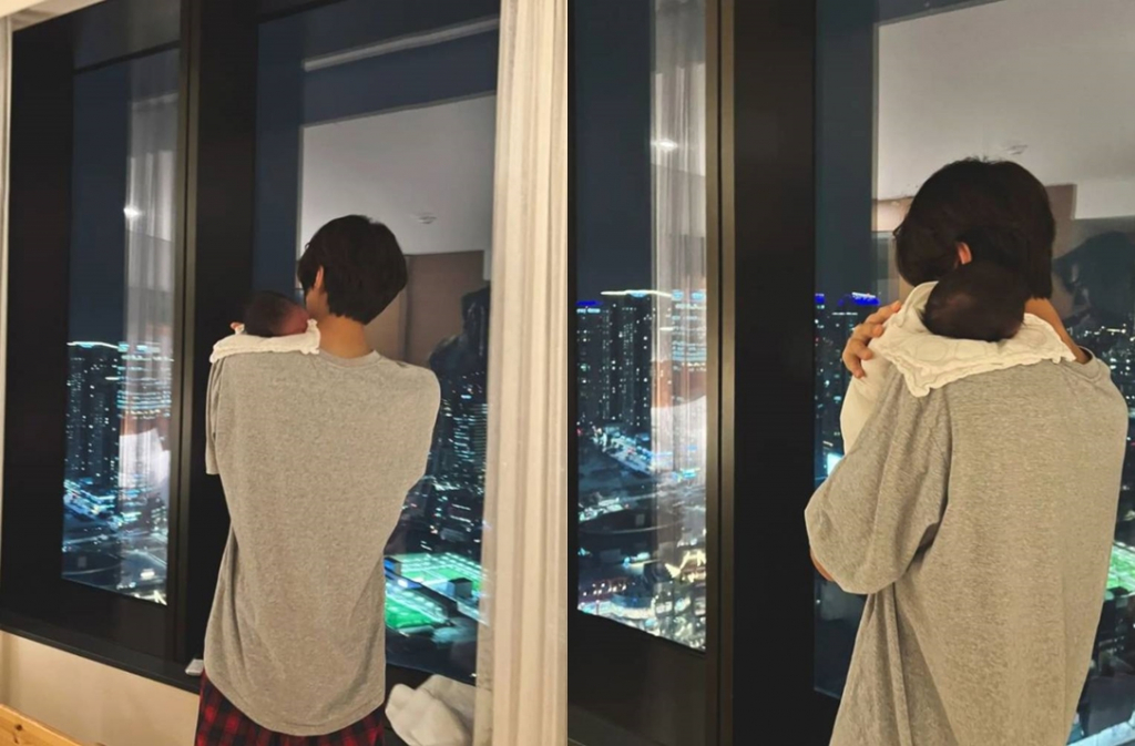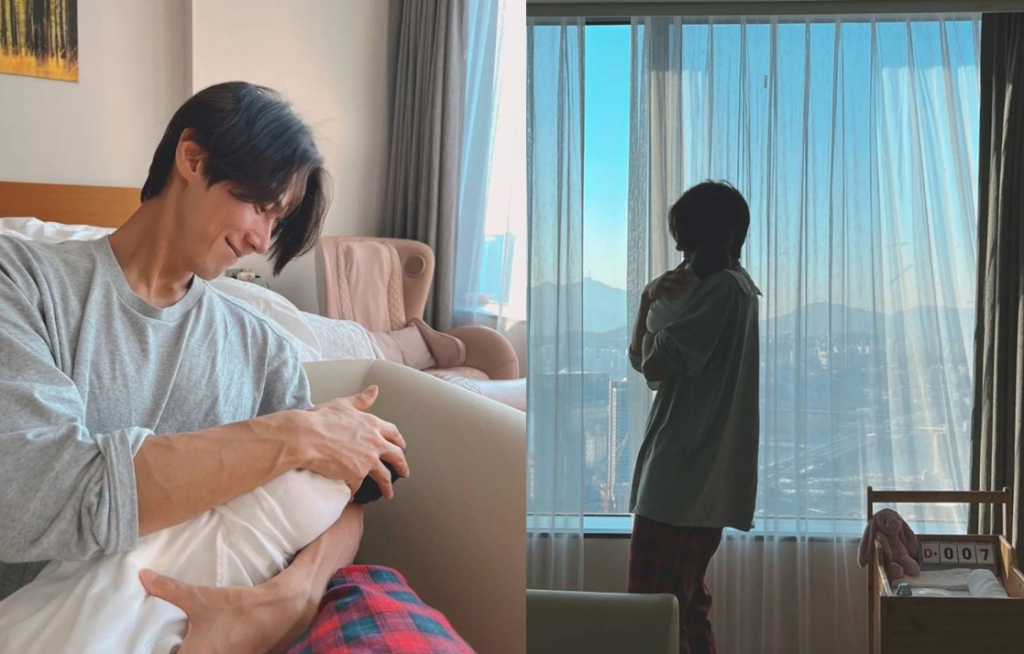 공개된 사진에는 산후조리원에서 갓 태어난 딸을 품에 안고 행복한 표정을 짓고 있는 송재희의 모습이 담겨 있다.