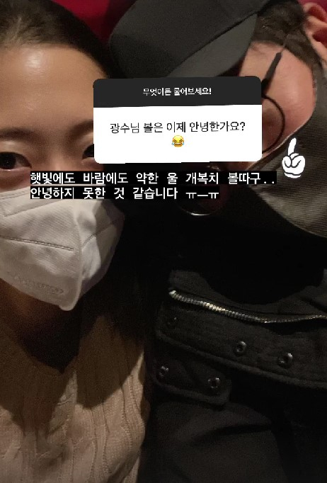 9기 영숙은 지난 30일부터 진행했던 팬들과의 무물 이벤트에서 "광수님 볼은 이제 안녕한가요?"라는 질문에 광수와 영화관 데이트를 즐기는 사진을 공개했다.
