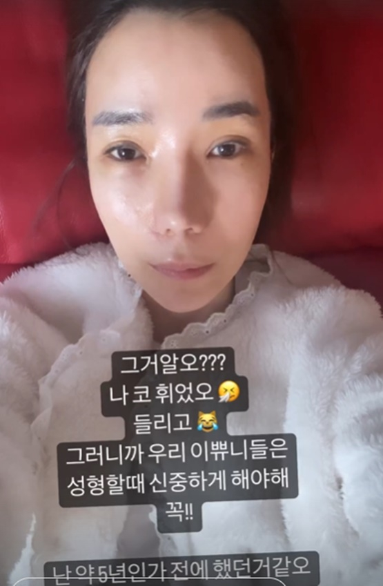 이와 함께 인민정은 "그거 알아? 나 코 휘었어. 들리고"라며 "그러니까 우리 이쁘니들은 성형할 때 신중하게 해야 해 꼭"이라고 밝혔다. 이어 인민정은 "난 약 5년 전인가 했던 것 같아"라고 덧붙였다.