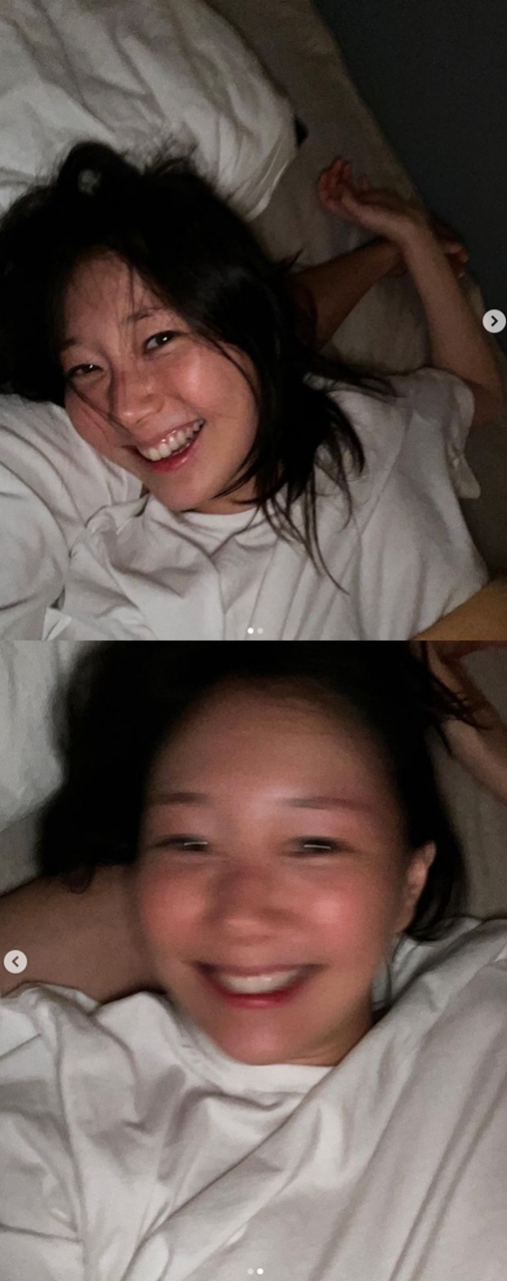 이유영은 5일 자신의 공식계정에 사진을 공개했다. 사진 속 이유영은 흰색 침대에 누워서 누군가의 팔베개를 하고 있다. 술에 취한듯 얼굴이 빨개진 이유영은 팔베개를 하고 행복한 듯 활짝 미소를 짓고 있다.