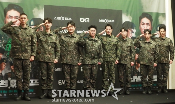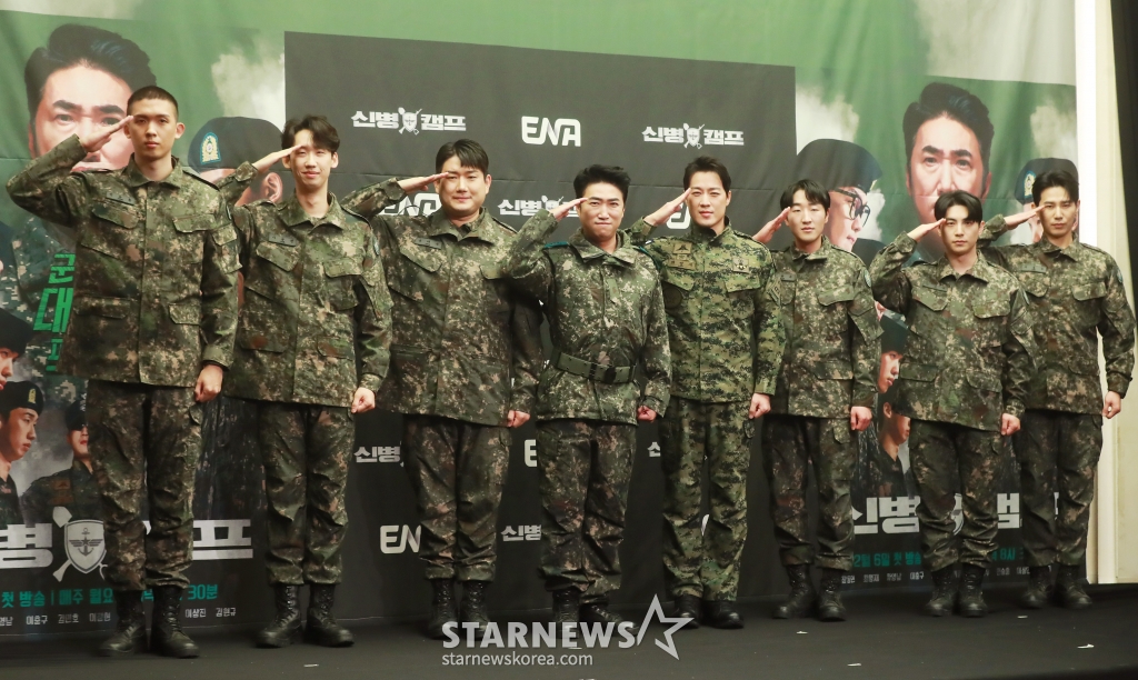 연예방송'신병캠프 입소합니다'[★포토]발행 : 2023.02.06 ・ 14:47이동훈 기자전승훈, 이상진, 남태우, 장동민, 최영재, 김현규, 차영남, 이충구가 6일 오후 서울 상암동 스탠포드 호텔에서 진행된 ENA 예능 '신병캠프' 제작발표회에 참석해 포즈를 취하고 있다.드라마 '신병'의 예능 스핀오프이자 대한민국을 강타했던 레전드 군대 콘텐츠의 세계관을 통합하는 군예능 대통합 프로젝트 '신병캠프'는 오늘(6일) 첫 방송된다. /2023.02.06<저작권자 © 스타뉴스, 무단전재 및 재배포 금지>신병캠프추천 기사이동훈 기자기자홈좋아요 연예-방송의 인기 급상승 뉴스연예-방송의 최신 뉴스