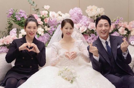 손헌수와 예비신부는 박수홍, 김다예의 결혼식에 하객으로 참석해 해맑은 미소와 손하트로 밝은 에너지를 전했다.