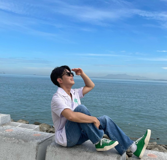 공개된 사진에는 흰색 반팔 셔츠와 청바지를 입은 폴킴이 부둣가에서 포즈를 취하는 모습이 담겼다. 그는 푸른 하늘과 바다를 배경으로 청량감을 뽐내 시선을 끌었다.