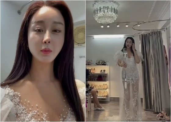 함소원은 7일 자신의 인스타그램에 "드레스 입어보기. 신났다 아주. 섹시주의보"라는 글과 함께 영상을 게재했다.