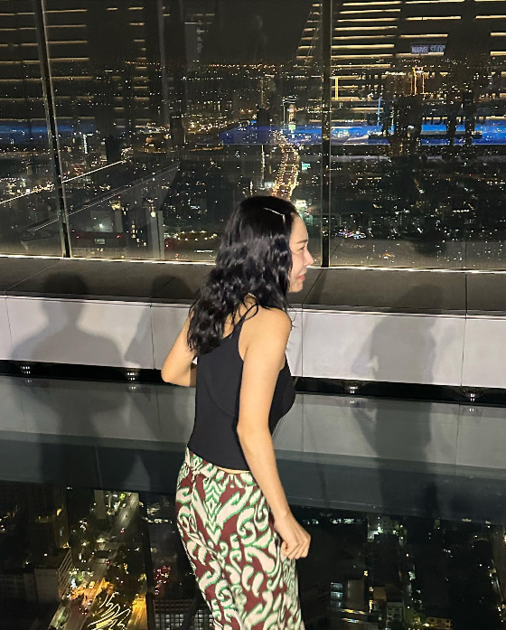 공개된 사진 중에는 허찬미가 방콕의 킹 파워 마하나컨 전망대에 있는 모습이 담겼다. 허찬미는 오금저리는 모습으로 시선을 끌었다.