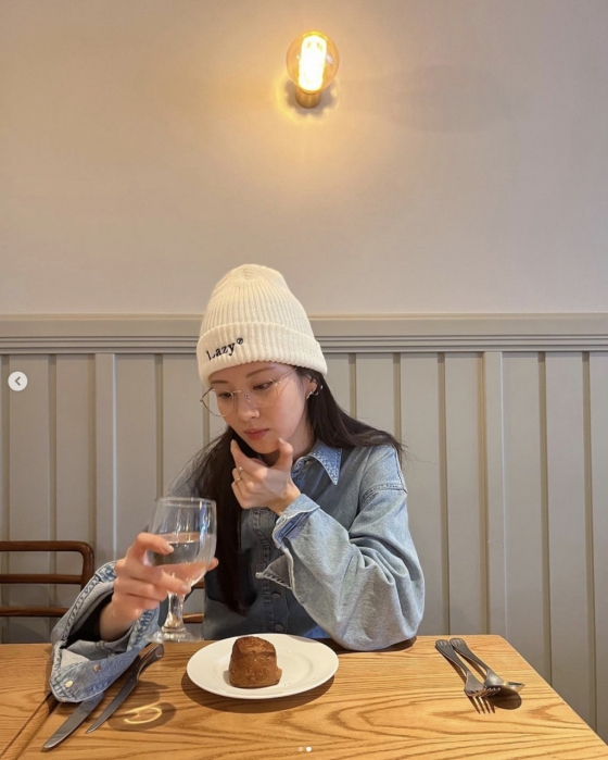 공개된 사진 속 서현은 데님 셔츠에 흰색 비니를 쓰고 안경을 착용했다. 서현은 빵이 놓인 테이블 앞에 앉아 와인잔을 살펴보았다.