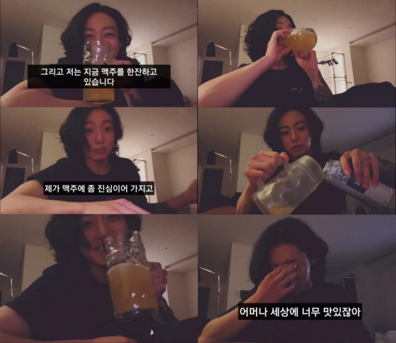 정국은 살얼음이 낀 잔을 기울려 캔 맥주를 부드럽게 따른 뒤 맛깔나게 마시는 모습으로 보는 이들의 시각, 미각, 청각을 한껏 자극시켰다.