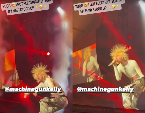 이와 함께 감전사고가 일어났던 무대 영상을 공개했다. 영상에는 감전으로 인해 머리카락이 하늘로 솟구친 머신건 켈리의 모습이 담겼다. 이에 머신건 켈리는 "내 머리카락이 섰다(My hair stood up)"이라고 설명했다.