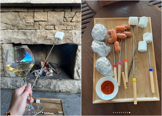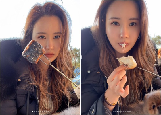 공개 된 사진 속 이다해는 행복한 겨울 캠핑을 즐기는 모습. 불 속에 구운 마시 멜로우와 고구마 등이 너무나 먹음직스럽다.