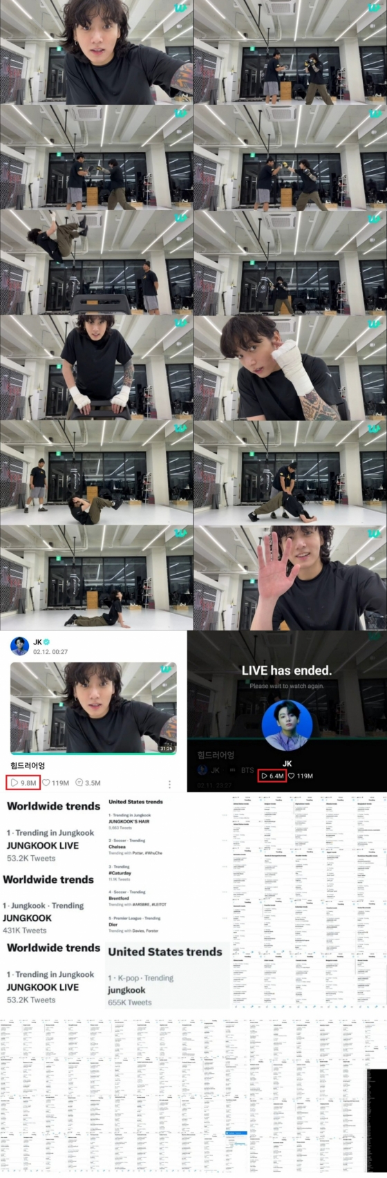 방탄소년단(BTS) 정국이 운동 라이브 방송으로 전 세계 1위를 차지하며 인기를 빛냈다.