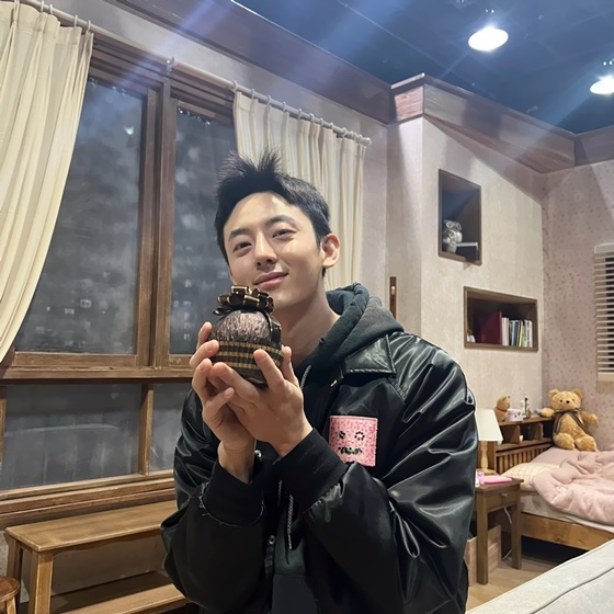 공개된 셀카 사진에서 이지훈은 얼굴만 한 빅사이즈의 초콜릿을 손에 든 채 달콤한 미소를 짓고 있다.