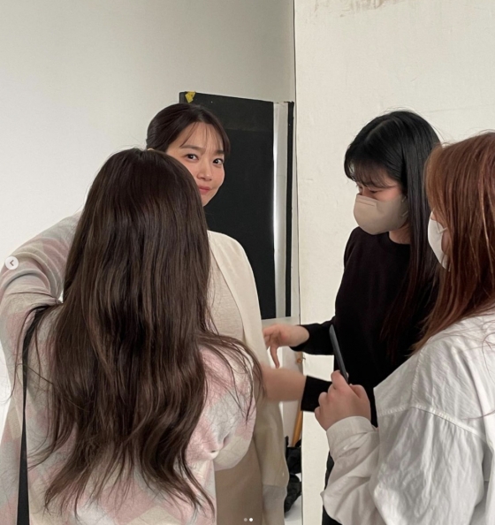신민아는 15일 자신의 인스타그램을 통해 하트 이모티콘과 함께 두 장의 사진을 게재했다.