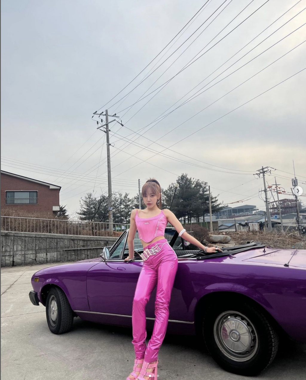 공개된 사진 속 김남주는 핫핑크 의상을 입고 보라색 오픈카에 기대 포즈를 취했다. 김남주는 한층 물오른 미모를 자랑했다.
