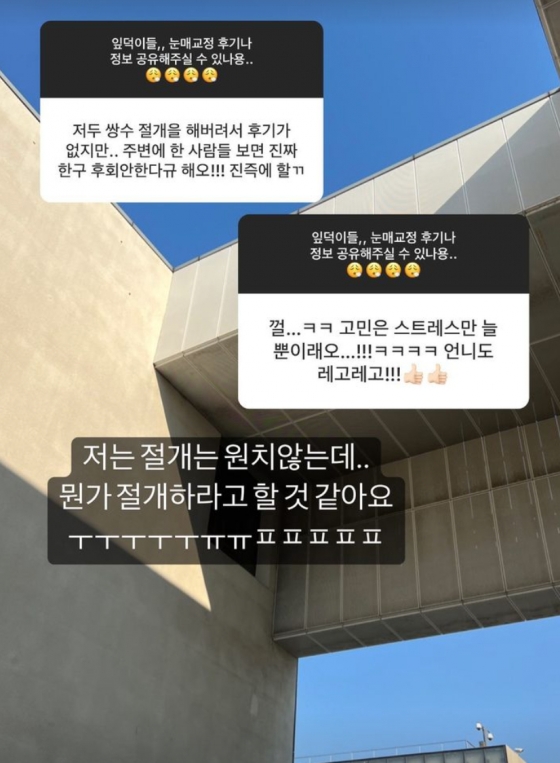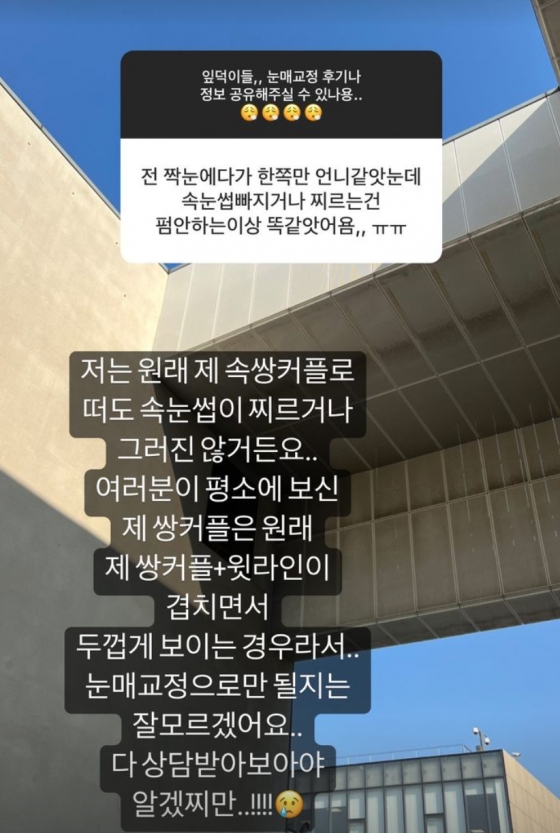 뷰티 유튜버 유깻잎이 자신의 눈매 교정 후기에 대해 고민을 털어놓았다.