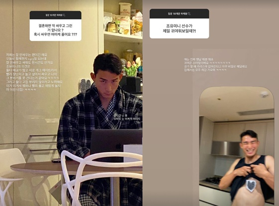 이어 "조유민의 의견은 둘 다 애교가 많고 서로 개그 메이트라서 빨리 장난치고 놀고 싶어서 싸우고 나서 그 분위기를 못 견디는 거 같다"며 "둘 다 고집부리지 않으려고 노력한다. '이거 이겨서 뭐 하나. 빨리 풀고 재밌게 놀자' 뭐 이런 느낌"이라고 덧붙였다.