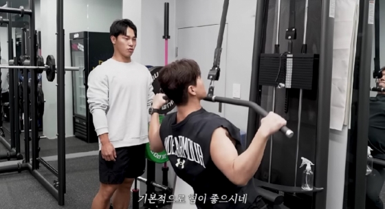 이후 유지태는 윤성빈과 함께 렛풀다운 등 여러 웨이트에 도전했다.