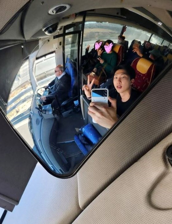 특히 버스 맨 앞자리에 탑승해 거울에 비친 자신의 모습을 촬영하는 RM의 모습이 눈길을 끌었다. 그는 손가락 브이(V)를 그리며 바쁜 일상에서 벗어나 한가로운 여유를 즐기는 모습이다.