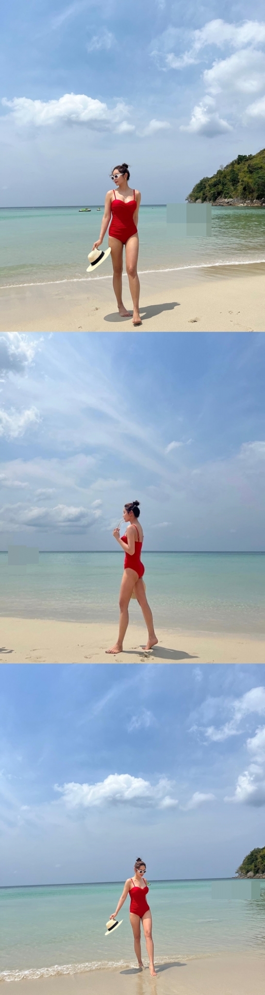 공개된 사진에는 푸켓 해변에 있는 조정민의 모습이 담겼다. 조정민은 빨간 수영복을 입고 글래머러스한 몸매를 과감하게 드러냈다. 푸켓의 강렬한 태양도 새빨간 수영복 자태로 눌러버리는 조정민이다.