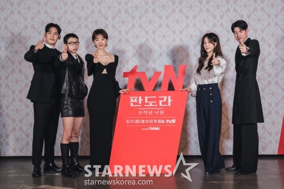 배우 박기웅, 봉태규, 장희진, 이지아, 이상윤이 7일 오후 온라인 생중계로 진행된 tvN 새 드라마 '판도라 : 조작된 낙원' 제작발표회에 참석해 포즈를 취하고 있다.
