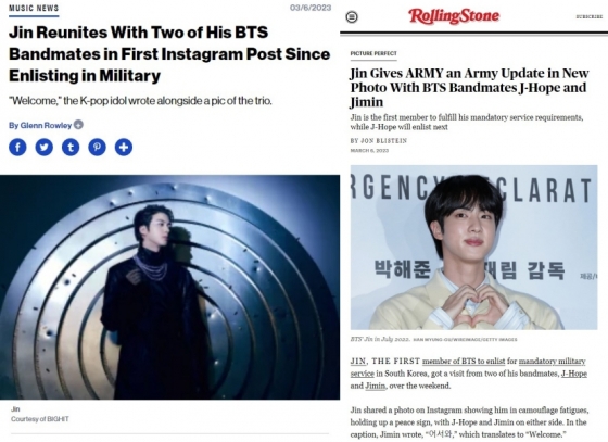 롤링 스톤도 "진, 방탄소년단 멤버와 함께 새로운 사진을 팬에게 제공"이라는 타이틀로 소식을 전하며 주목을 받았다.