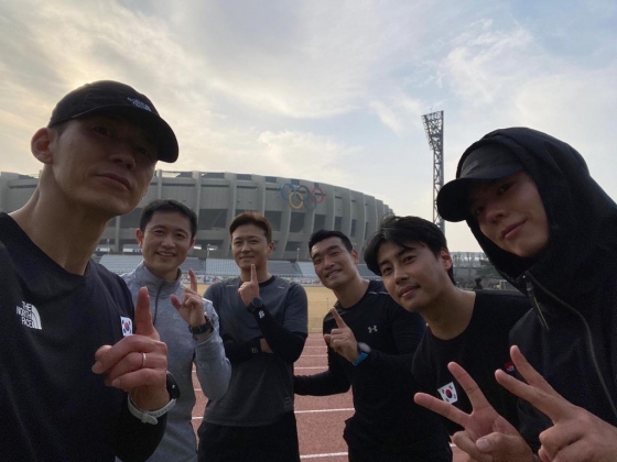 공개된 사진 속에는 러닝 전 운동복을 입고 함께 카메라를 응시하고 있는 진태현 션, 이영표, 조원희, 박보검 등의 모습이 담겨있다.