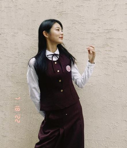 신예은은 극 중 박연진이 다닌 고등학교 교복을 입고 어딘가를 향해 미소 짓고 있다. '더 글로리'에서 금방 튀어나온 듯한 모습이 눈길을 끈다.