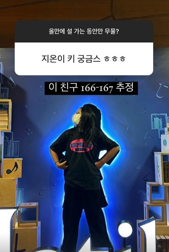이날 한 네티즌은 "지온이의 키 궁금하다"는 질문을 건넸다. 이에 윤혜진은 "이 친구 166~167 추정"이라고 답했다.