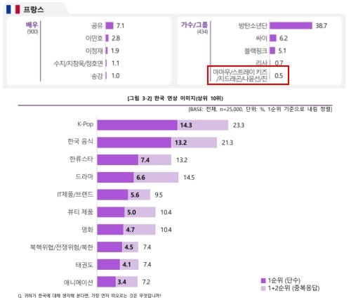 지난 10일 문화체육관광부는 한국문화교류진흥원(KOFICE)과 함께 국가별 한류 콘텐츠 소비 현황과 확산 수준을 확인하고 해외 소비자 정보를 수집, 분석하여 비즈니스 전략 수립의 자료로 제공하기 위한 '2023 해외한류실태조사 결과 보고서'를 발표했다.