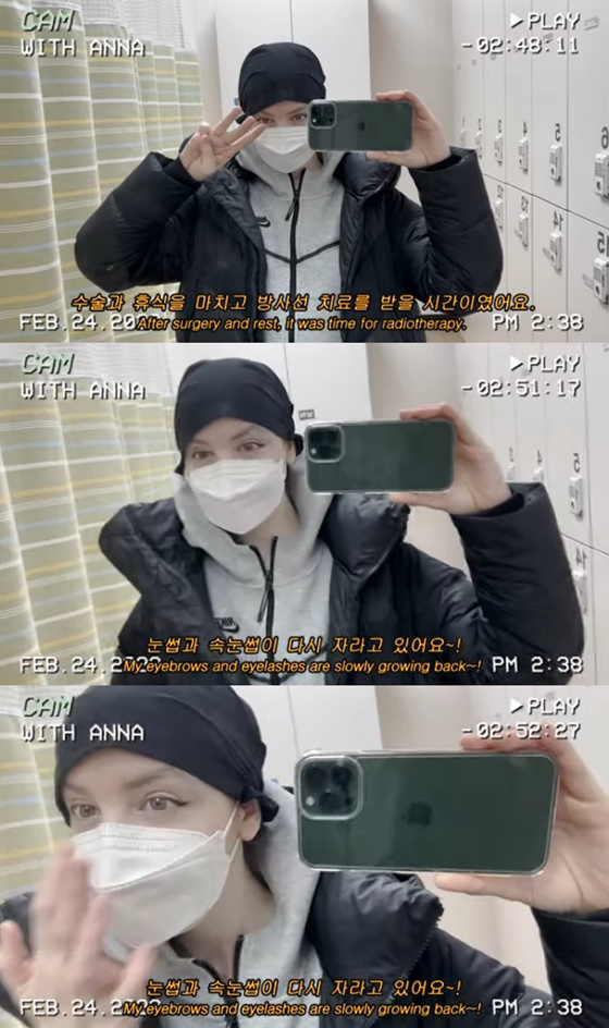 이날 안나는 "모든 방사선 치료 세션을 마쳤고 지금은 회복된 느낌"이라며 "수술과 휴식을 마치고 방사선 치료를 받을 시간이었다. 이제 치료는 끝났다. 날도 따뜻해지고 계획도 많이 세우게 된다. 지금은 눈썹도 다시 자라고 있다"고 밝혔다.
