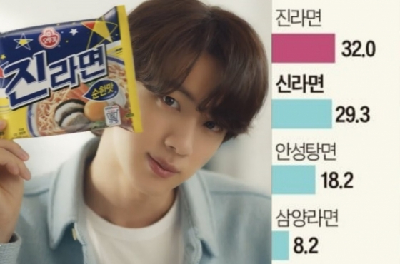[문완식 스타뉴스 기자] 방탄소년단(BTS) 진이 광고한 라면이 구매경험도 1위를 차지하며 '진 이펙트'를 증명했다.