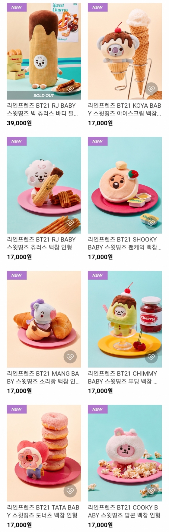 방탄소년단 각 멤버가 디자인한 BT21의 디저트 모양 스윗띵즈 에디션이 1종류씩 출시된 가운데 진의 알제이는 눈부신 인기로 'RJ BABY 스윗띵즈 빅 츄러스 바디 필로우'와 'RJ BABY 스윗띵즈 츄러스 백참 인형' 2종류가 출시됐고, 제일 먼저 품절돼 천재적인 감각을 가진 진의 최고의 인기와 영향력을 실감케한 바 있다. 빠른 품절로 인해 구입하지 못한 팬들의 재입고 문의에 라인프렌즈는 'RJ BABY 스윗띵즈 빅 츄러스 바디 필로우' 단독 한정 예약 판매를 진행하기도 했다.