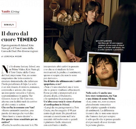 [김수진 스타뉴스 기자] 김남길이 글로벌 매거진 '베니티 페어(Vanity Fair) 이탈리아' 3월호 인터뷰를 진행했다. 출연중인 티빙 오리지널 시리즈 '아일랜드' 작품과 극 중 역할 '반'에 대해 이야기했다.