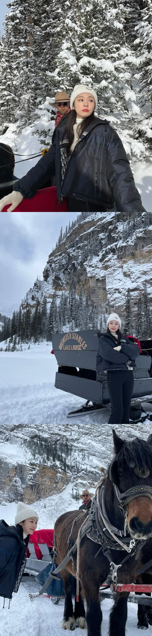 사진 속 김연아는 설원을 배경으로 여유를 만끽하는 모습이다. 그는 흰색 비니에 패딩을 입고 호기심 가득한 눈으로 말을 쳐다보는 등 해맑은 소녀의 모습을 보여주고 있다. 또 피겨 여왕답게 눈밭에서 더욱 빛을 발하는 김연아의 아름다운 미모가 시선을 사로잡는다.